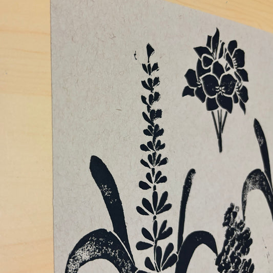 Wildflowers original block print; lavender, larkspur, violets